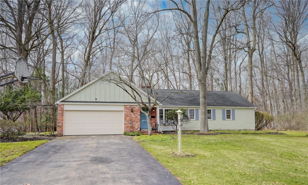 You've Admired This One! One of Fairport's Most Sought-After Neighborhoods! This Quaint, Charming Brick & Cedar Ranch Shines! Nestled on a Pristine Wooded Backdrop of Seclusion! Freshly Painted Interior! Brick Floor Entry! Oak Pegged Floors throughout! Perfect Floor Plan! Today's Open Concept and Design! Light and Bright Living Room with Huge Picture Window and Gas Fireplace! Delightful and Well Appointed Eat in Kitchen with Classic Wood Cabinetry, Exposed Brick Wall, Butcher Block Counter and Pantry! Lovely Dining Room Opens to Fabulous Every Season Room with Glass French Doors! Ideal Year-Round Relaxing Overlooking Your Tranquil Back Yard with New 2025 Fence, Slate Patio and Private Wooded Paradise! No Neighbors in the Back! Gorgeous Mature Plantings Walkways & Landscaping! 3 Generous Sized Bedrooms - One with 1st Floor Laundry! First Floor Powder Room! 8-Year-Old Tear Off Roof with 10 Year Transferable Warranty! Permanent Whole House Generator! New Furnace and Central Air in 2017! $1000 Credit for Inoperable Refrigerator. Home Warranty Coverage! Nothing To Do but Move In! Delayed Negotiations April 8th at 4PM!